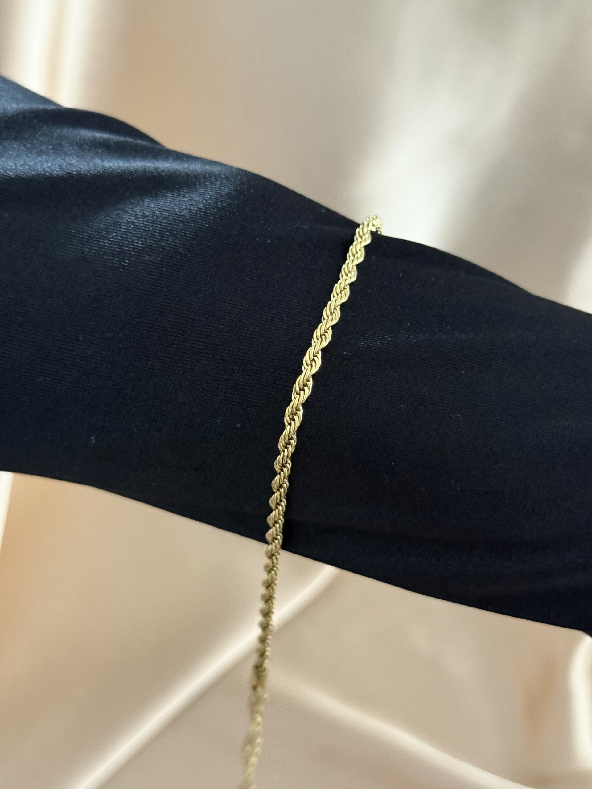 Ky byzylyk në stil gërshet është i punuar nga stainless steel 316 dhe i veshur me PVD Gold 18K për një shkëlqim të gjatë dhe të qëndrueshëm. Dizajni i gërshetuar i jep aksesorit një pamje të rafinuar dhe moderne, duke e bërë të përshtatshëm për përdorim të përditshëm apo për raste speciale.