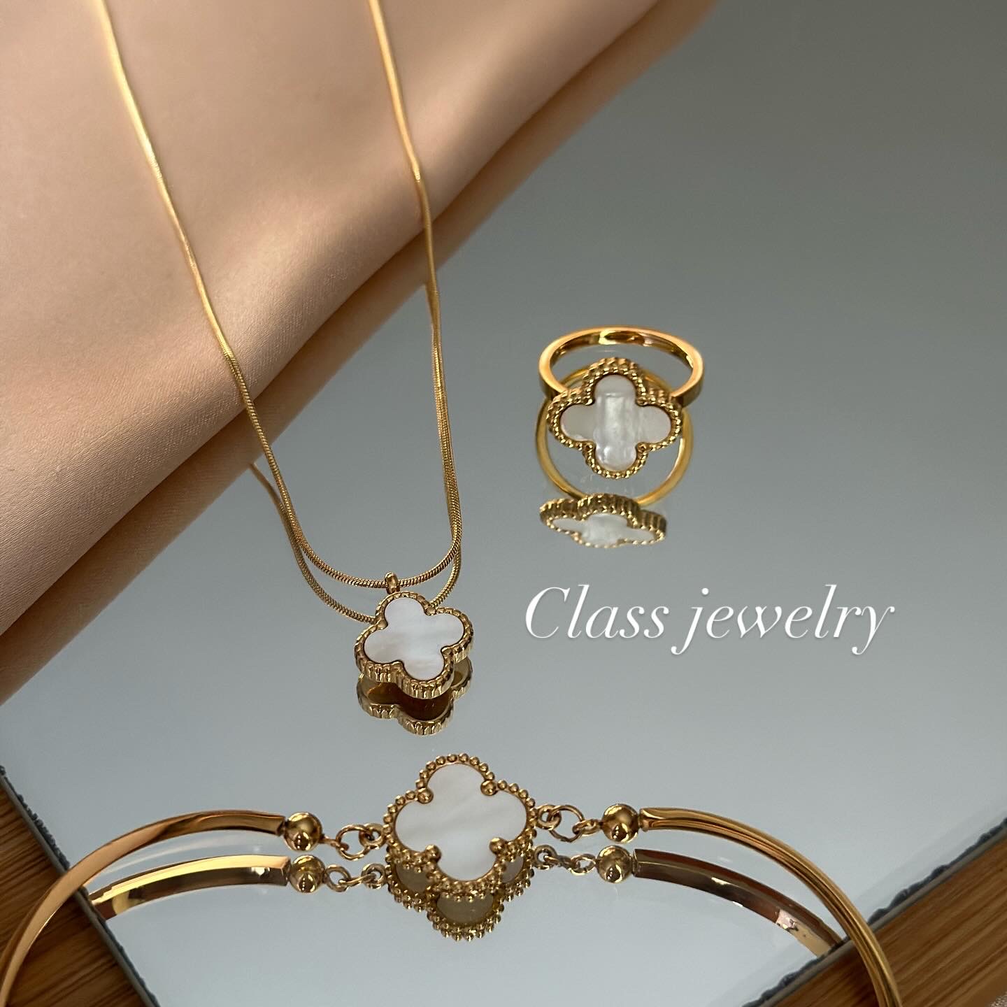 Varësja, unaza dhe byzylyku janë të punuara në Stainless Steel 316 me veshje PVD Gold 18K, duke ruajtur shkëlqimin dhe qëndrueshmërinë.