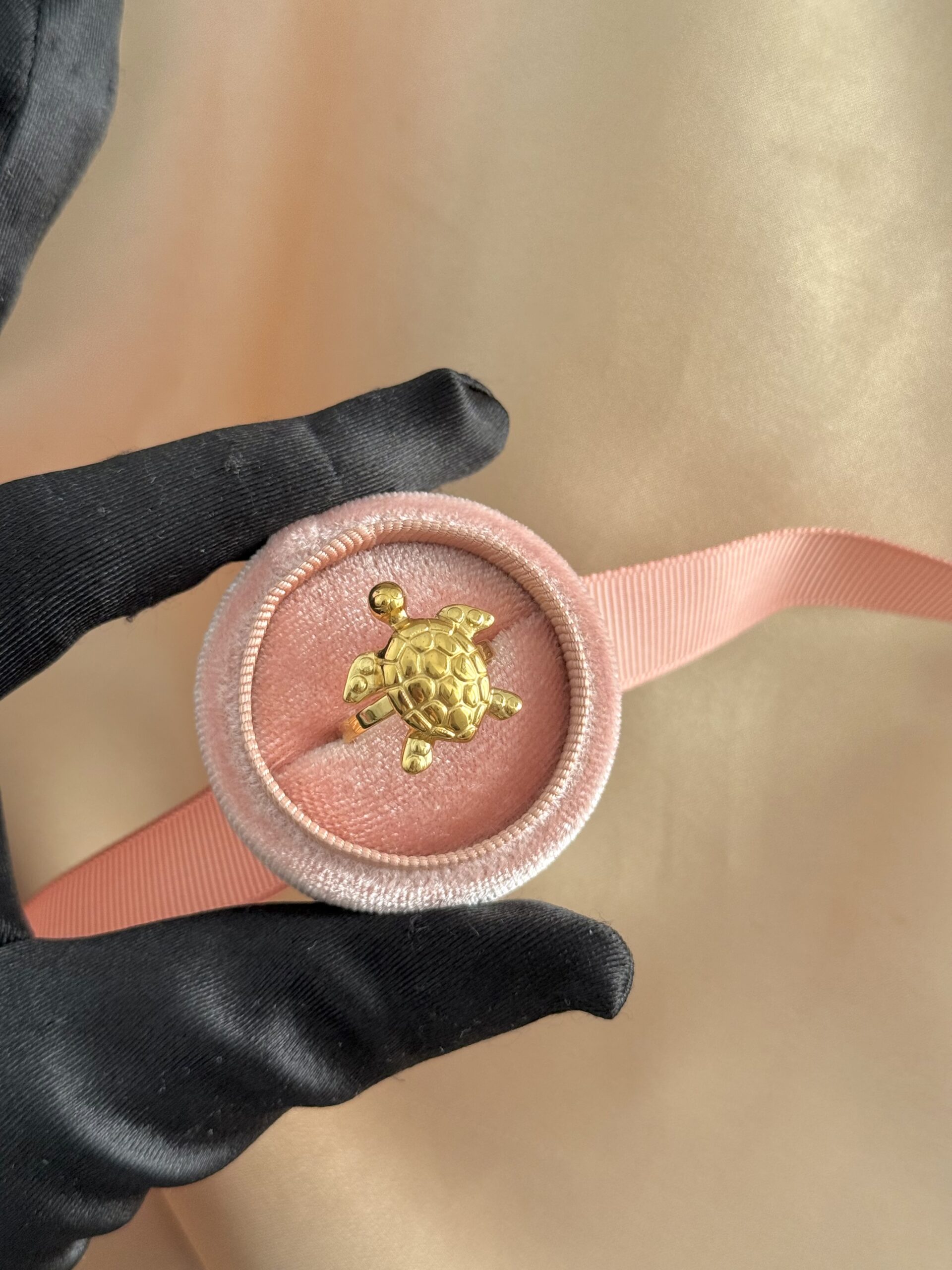 E punuar nga çelik inox 316 me PVD Gold 18K, kjo unazë shfaq breshkën simbolike, duke i dhënë aksesorit një prekje unike dhe karakteristike. Nuk nxihet dhe qëndron gjithmonë me shkëlqim, perfekt për çdo ditë ose rast special ✨