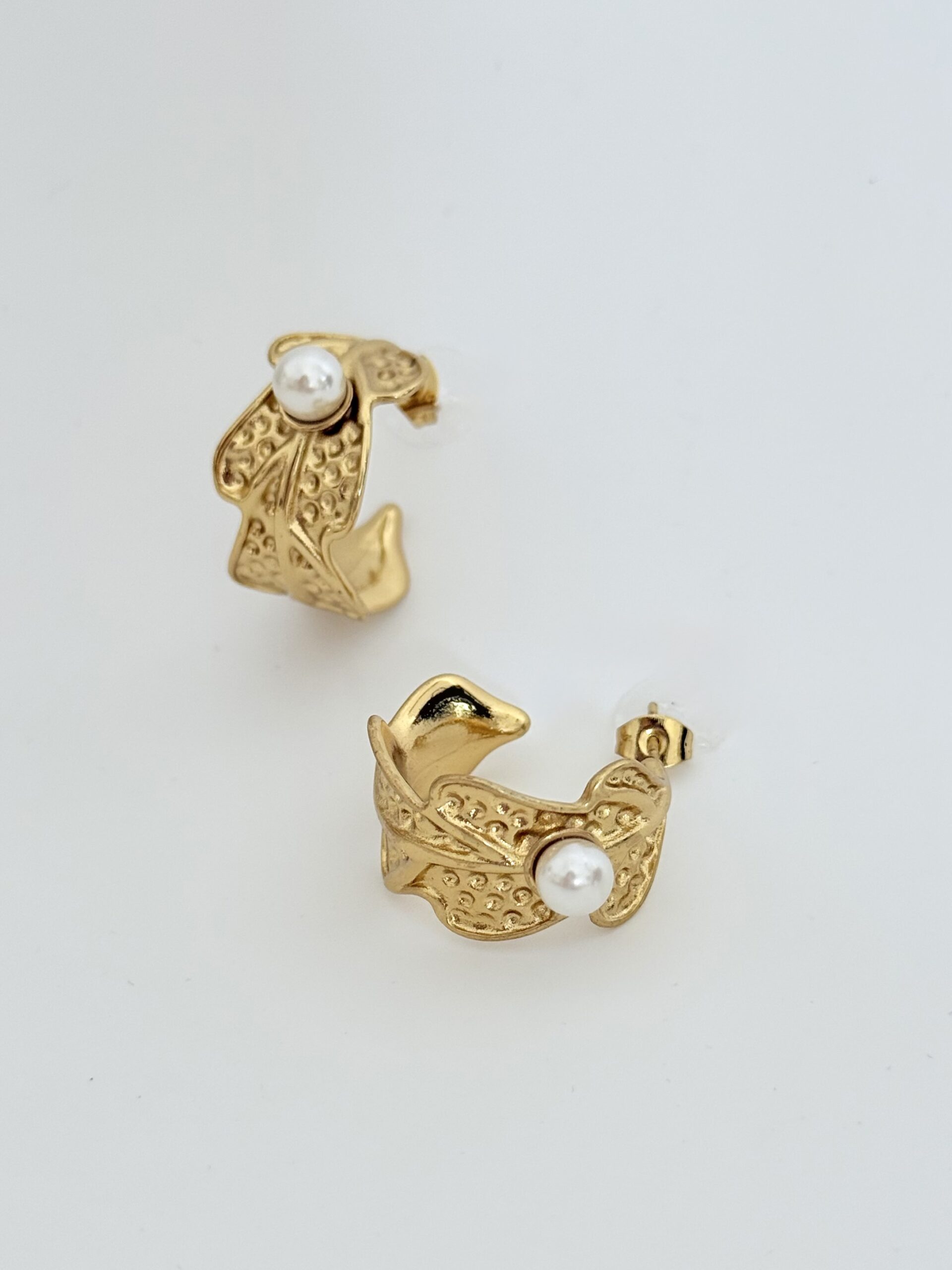 Këto vëthë janë një kombinim perfekt i finesës dhe stilit klasik. Punuar me ngjyrë gold me detaje të gdhendura, ata sjellin një pamje unike dhe të sofistikuar. Perlat e bardha të vendosura me kujdes shtojnë butësi dhe shkëlqim, duke i bërë idealë si për përditshmëri ashtu edhe për evente speciale.